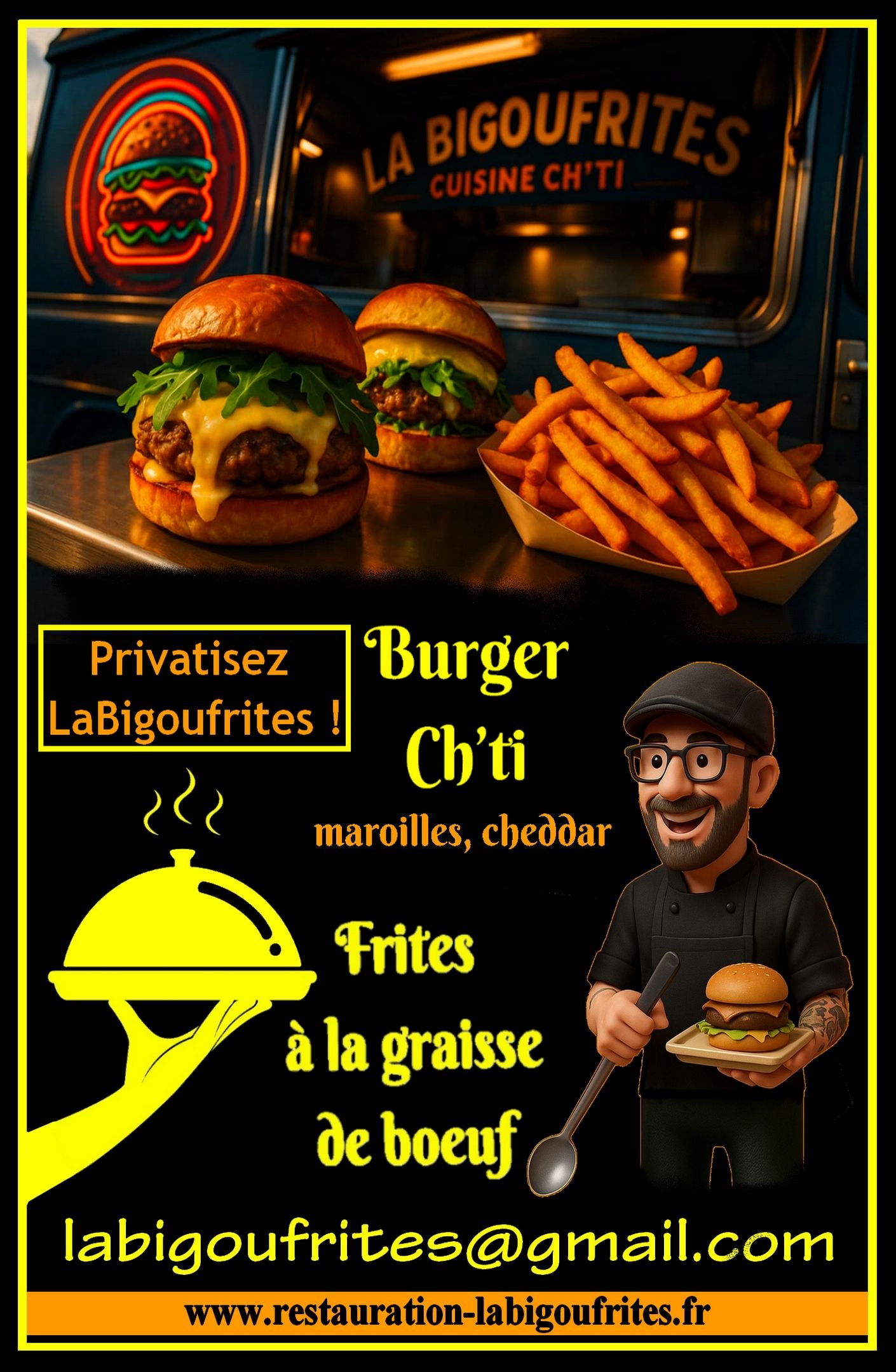 Découvrez mon food-truck LaBigoufrites et appelez-moi pour savoir où je serai cette semaine.
